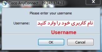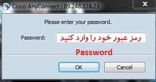 6- پس از کلیک بروی دکمه کانکت پنجره ای مشابه تصویر زیر برای شما به نمایش در خواهد آمد که می بایست یوزرنیم و پسورد اکانت خود را وارد و بروی دکمه OK کلیک کنید