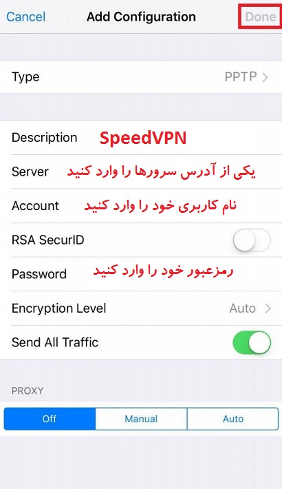توجه داشته باشید که سرویس PPTP در بعضی مناطق محدود شده و دچار افت سرعت است،در صورت داشتن مشکل بالا توصیه میشود با سرویس سیسکو یا اپن وی پی ان متصل گردید