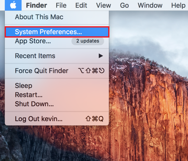 1- از منو اصلی اپل System Preferences را انتخاب می کنیم که صفحه تنظیمات باز شود