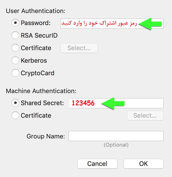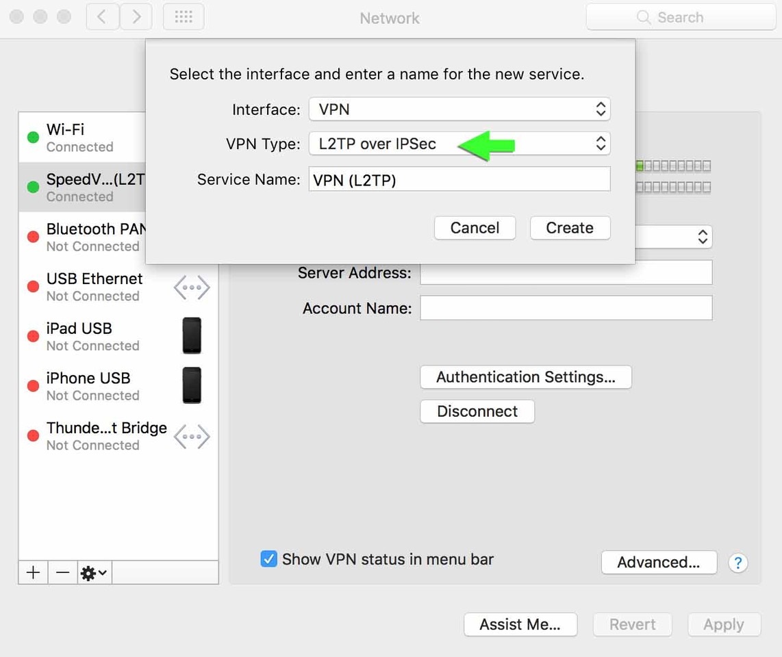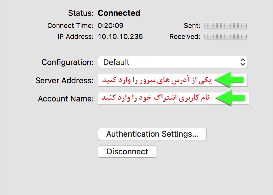 توصیه میشود برای استفاده از سرویس L2TP در سیستم مکینتاش، حتما و فقط از کانکشن هوشمند استفاده کنید، برای دریافت کانکشن هوشمند کلیک کنید.